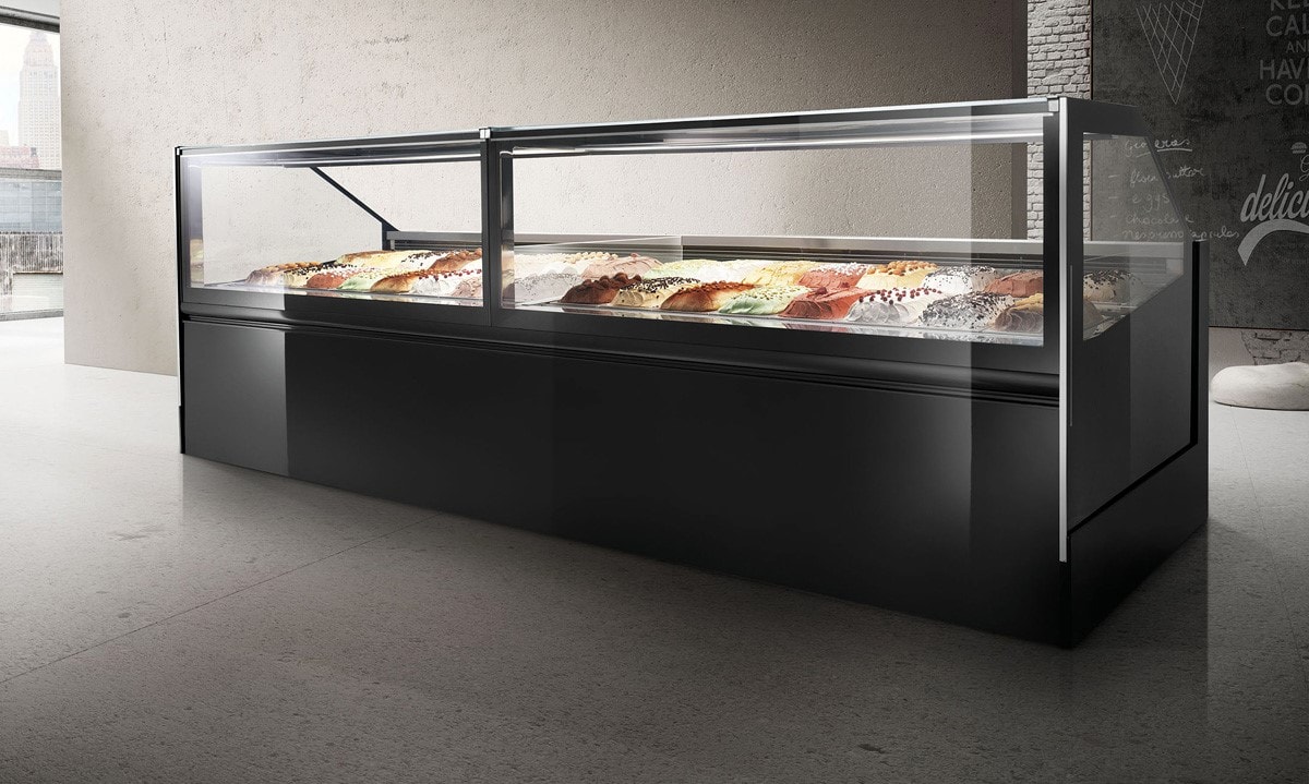 La pulizia della vetrina da gelato