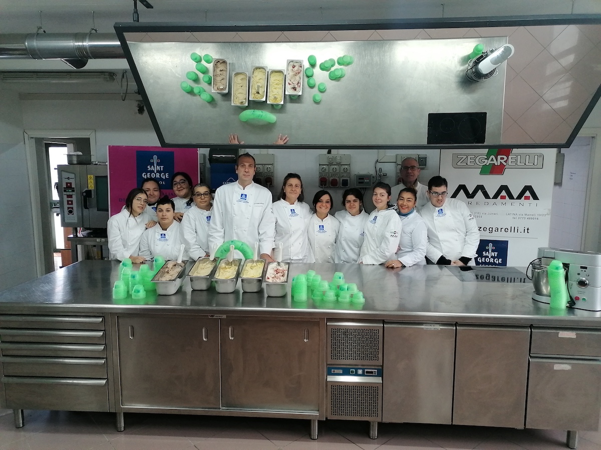 Il corso è stato strutturato in questo modo: 1) parte iniziale teorico-pratica di tecnica professionale, preceduta da formazione igienico-sanitaria e legislativa specifica; 2) un lungo percorso in aula di esercitazioni pratiche; 3) uno stage presso le aziende della Regione aderenti al Progetto. All’iniziativa hanno partecipato 13 iscritti di ambo i sessi che si sono specializzati nell’ambito della gelateria artigianale italiana e ora sono pronti per l’impiego in attività del settore. Gli allievi, oltre al corso, avevano ricevuto dalla Regione un contributo per le spese di 10 euro giornaliere. Essi hanno concluso l’esperienza didattica con un esame teorico-pratico e chi ha superato la prova ha ottenuto un attestato di frequenza riconosciuto dalla Regione Lazio su tutto il territorio nazionale ed europeo. La Saint George School si occupa di formazione nel settore alimentare (pasticceria, gelateria, panificazione, pizzeria e ristorazione) dal 2002. Ad oggi, ha formato, con i migliori insegnanti a livello nazionale, centinaia di allievi che, negli anni, hanno aperto attività o trovato impiego presso aziende specifiche. Il corso di gelateria che è appena terminato e ha dato grandi soddisfazioni alla scuola e ai partecipanti, è stato seguito da un team di insegnanti organizzati da Donata Panciera, docente certificata che si è sempre occupata di formazione. La docente proviene da un’antica famiglia di gelatieri che iniziò l’attività di gelateria nell’Impero Austro-Ungarico già alla fine dell’800. Donata, dopo essersi professionalmente formata in famiglia, ha aperto molte attività in Italia e in vari Paesi del mondo, soprattutto in Giappone e a Singapore. Centinaia di allievi hanno frequentato i suoi corsi di qualificazione professionale; la Panciera è anche una giornalista pubblicista e ha scritto numerosi libri di tecnica e storia della gelateria in varie lingue. L’insegnamento teorico e pratico nella Saint George ha avuto inizio dalle basi, dalla merceologia degli alimenti, dal metodo di lavoro, per arrivare alla preparazione di gelati classici, sorbetti, gelati salutistici, gastronomici e ogni genere di dolci freddi. I partecipanti hanno dimostrato un grande interesse nei riguardi di tutto il lavoro che è stato svolto e hanno affrontato con entusiasmo il metodo innovativo in cui si è svolto tutto il programma. La Saint George School di San Giorgio a Liri, data l’esperienza acquisita in passato e anche con il recente corso appena terminato, è pronta a svolgere ulteriori esperienze nel settore.