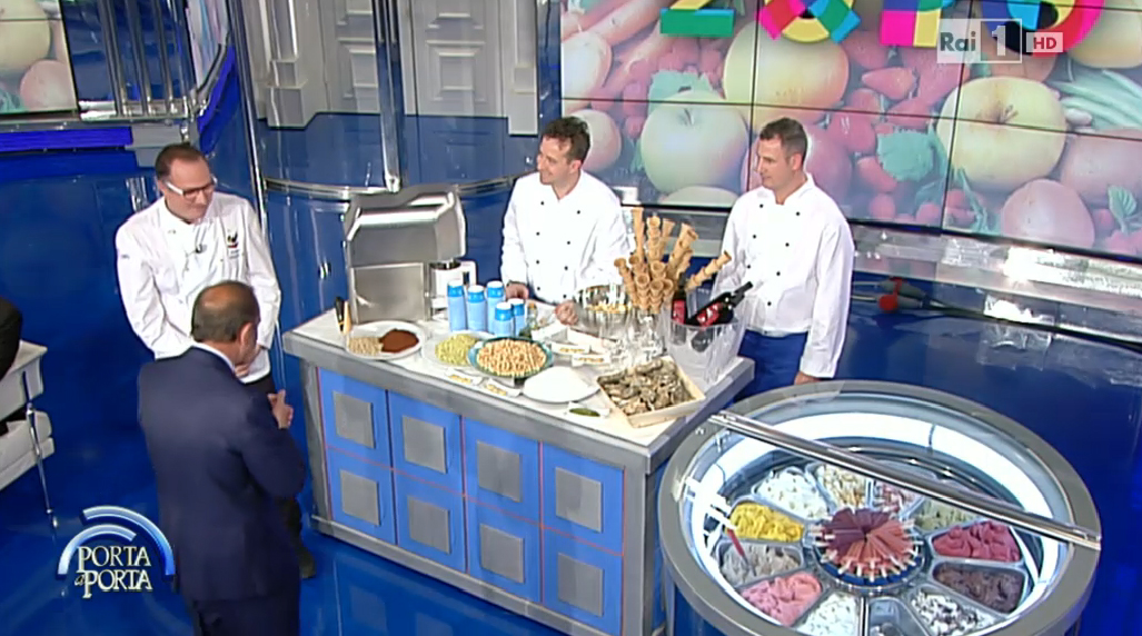 Nella puntata di Porta a Porta del 28 Aprile, si è parlato di eccellenze alimentari italiane nel mondo e di Expo. Insieme a chef stellati e alla pizza dei campioni del mondo, c’era il gelato artigianale e a parlarne è stato il Maestro Gelatiere Sergio Colalucci di Roma, che ha utilizzato la vetrina Tonda di IFI.