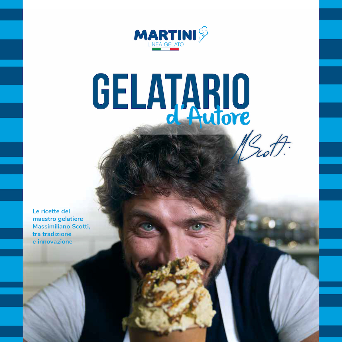 “Martini Linea Gelato presenta l’esclusivo ricettario realizzato in collaborazione con Massimiliano Scotti, gelatiere ed imprenditore in forte crescita nel nostro settore. Una ricetta alla settimana, per avere sempre nuove idee da proporre in vetrina!