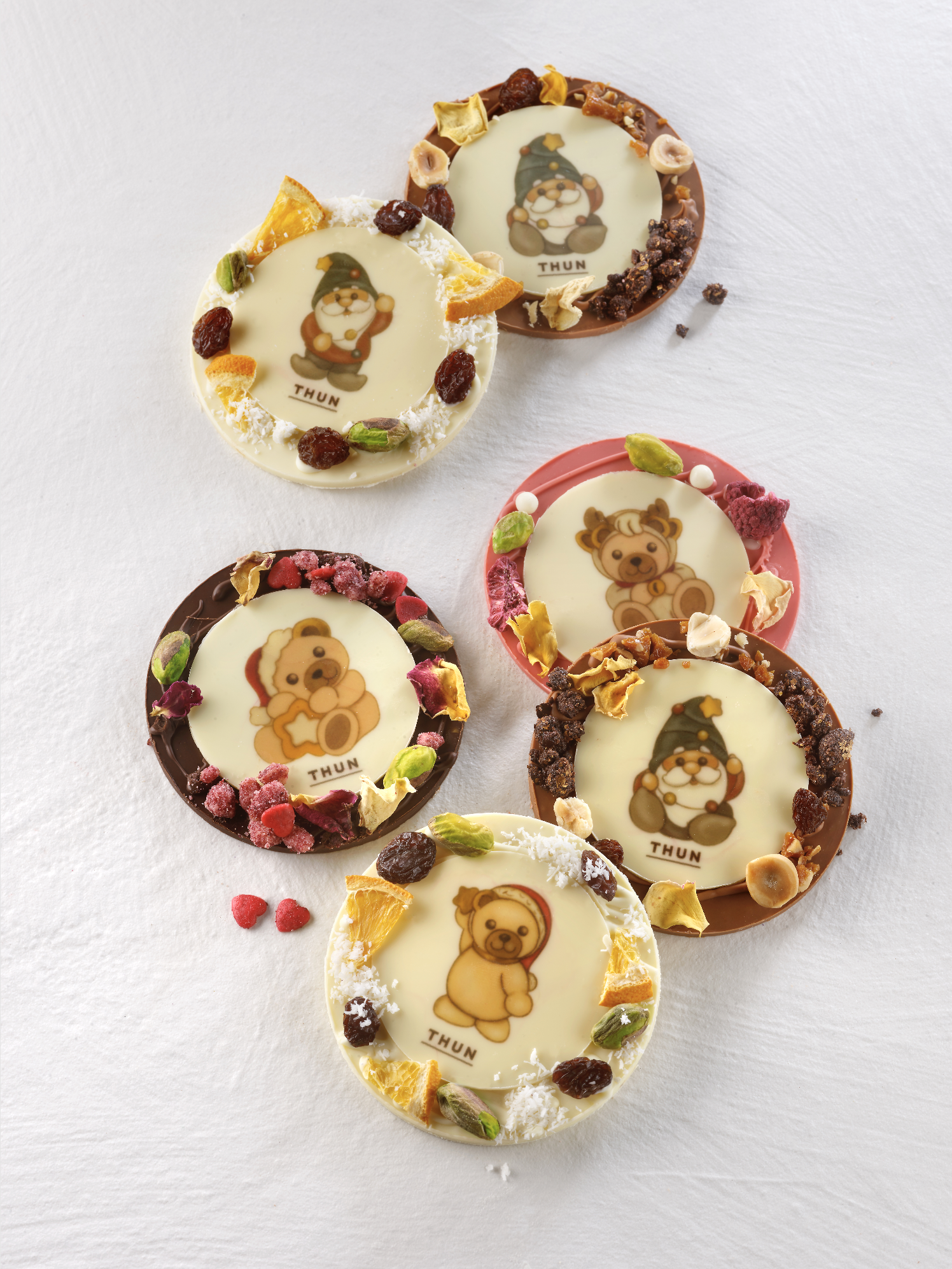 La gamma è composta da due referenze in cioccolato bianco chablon, una con protagonista il Teddy natalizio e una con lo Gnomo Oliver, e da tre referenze in zucchero ispirate al mondo incantato del Teddy, dello Gnomo Oliver e alla Sacra Famiglia.