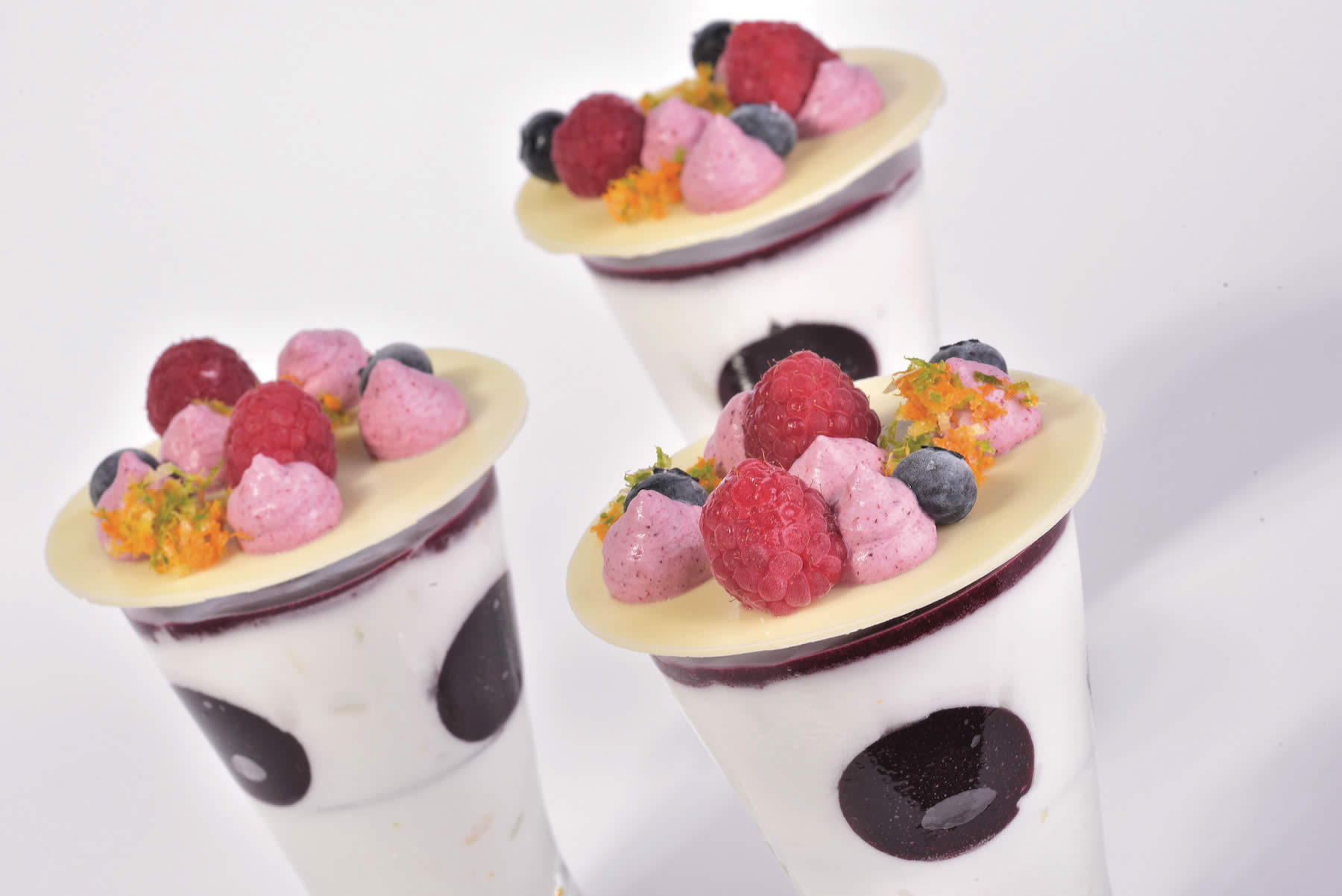Monoporzione in bicchiere di semifreddo allo yogurt e agrumi ai frutti di bosco con gelee ai frutti rossi e cioccolato bianco INGREDIENTI Semifreddo Yogurt profumato agli agrumi Gelee ai frutti rossi Sfoglia di cioccolato bianco Semifreddo ai frutti di bosco Frutti di bosco freschi Menta Gelatina ai frutti rossi INGREDIENTI Purea di Fragola -200 gr […]