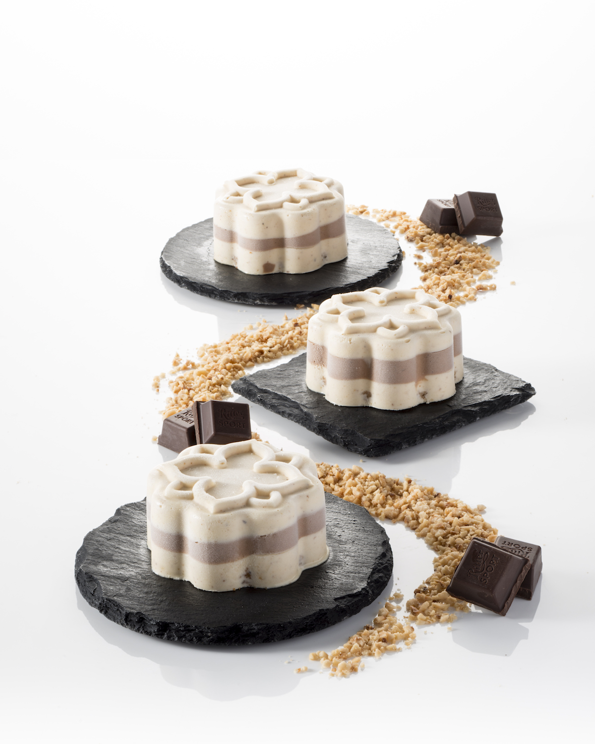 Semifreddo al gianduia e semifreddo alla nocciola, dacquoise alle nocciole. Semifreddo alla Nocciola Crema pasticcera gr. 200 Panna 35% m.g. ” 500 Pasta nocciola tgt ” 100 Meringa italiana ” 250 Totale ” 1050 Procedimento: Montare la panna in planetaria con la frusta. Dosare la crema pasticcera e la pasta di nocciola, amalgamare i due […]