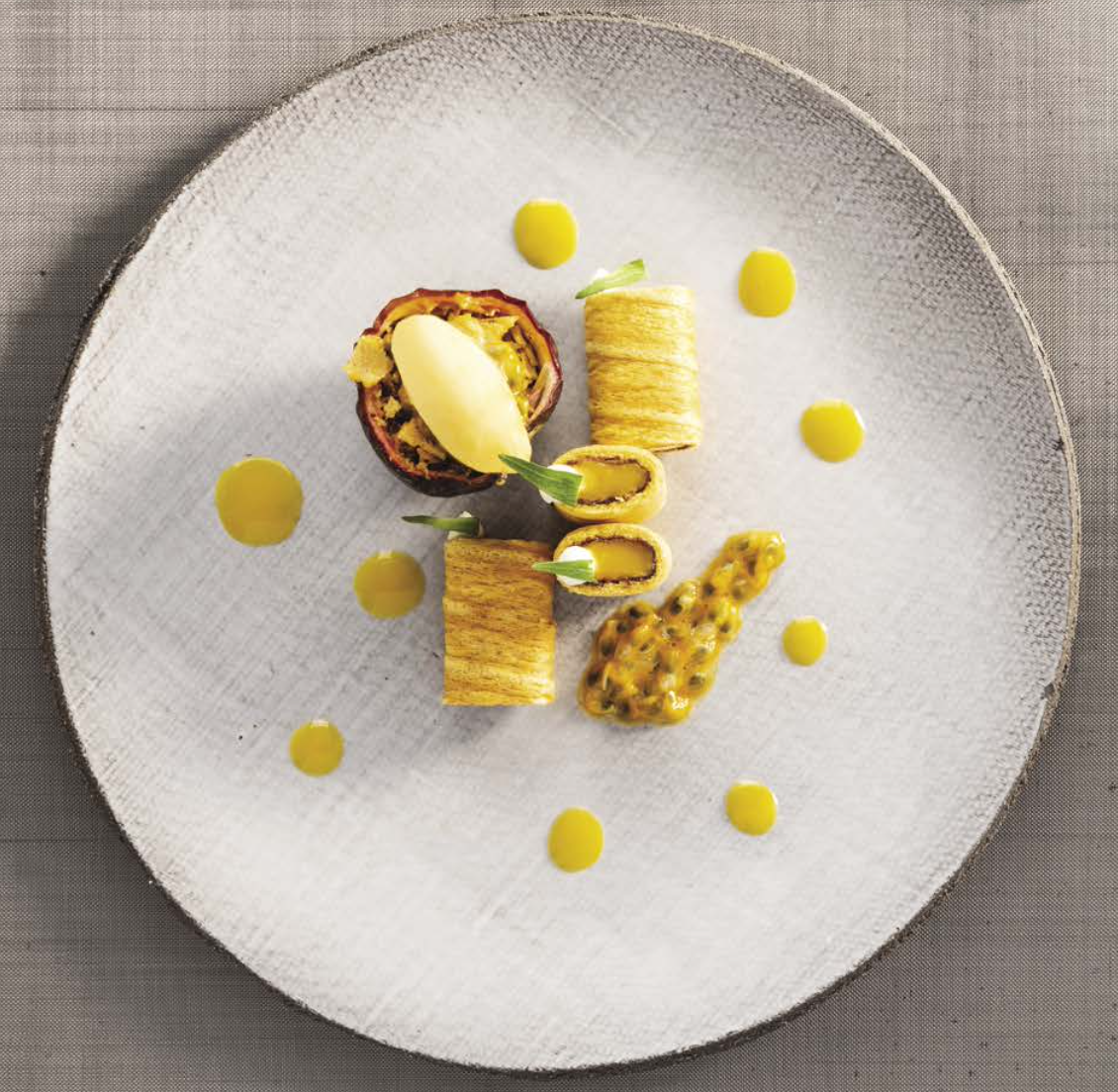LEPETITTÈ VANIGLIA Bussy cannolo semi-schiacciato con cremoso, sorbetto e salsa al passion fruit Lepetittè Vaniglia Cialda arrotolata semischiacciata ricoperta interamente di cacao Per il cremoso al passion fruit Ingredienti per 4 persone Succo passion fruit – g 500 Zucchero semolato – g 30 Agar agar – g 5 Gelatina in fogli – g 3 Per la salsa […]