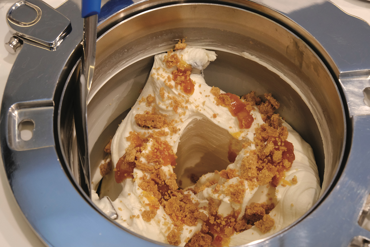 Gelato stratificato al gusto di pistacchio e mandorla variegato con confettura all’arancia e con streusel di mandorle “Nel corso degli anni ho sempre cercato di soddisfare le esigenze della mia clientela, sia in rapporto ai gusti di gelato che nella loro lavorazione. Da qualche anno, infatti, ho apportato alcune varianti offrendo loro gelato senza latte […]