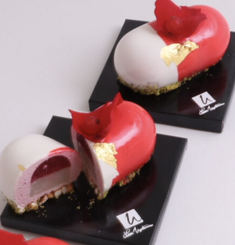 Per la mousse ai lamponi Ingredienti Lamponi in purea – 562 gr Gelatina in polvere -29 gr Panna 35% m.g. – 937 gr Zucchero semolato – 225 gr Uova albume – 169 gr Zucchero semolato – 75 gr Acqua – 75 gr Procedimento Cuocere l’acqua con i 225 g di zucchero e portarli a 121°C. Versare questo composto sugli albumi mentre […]