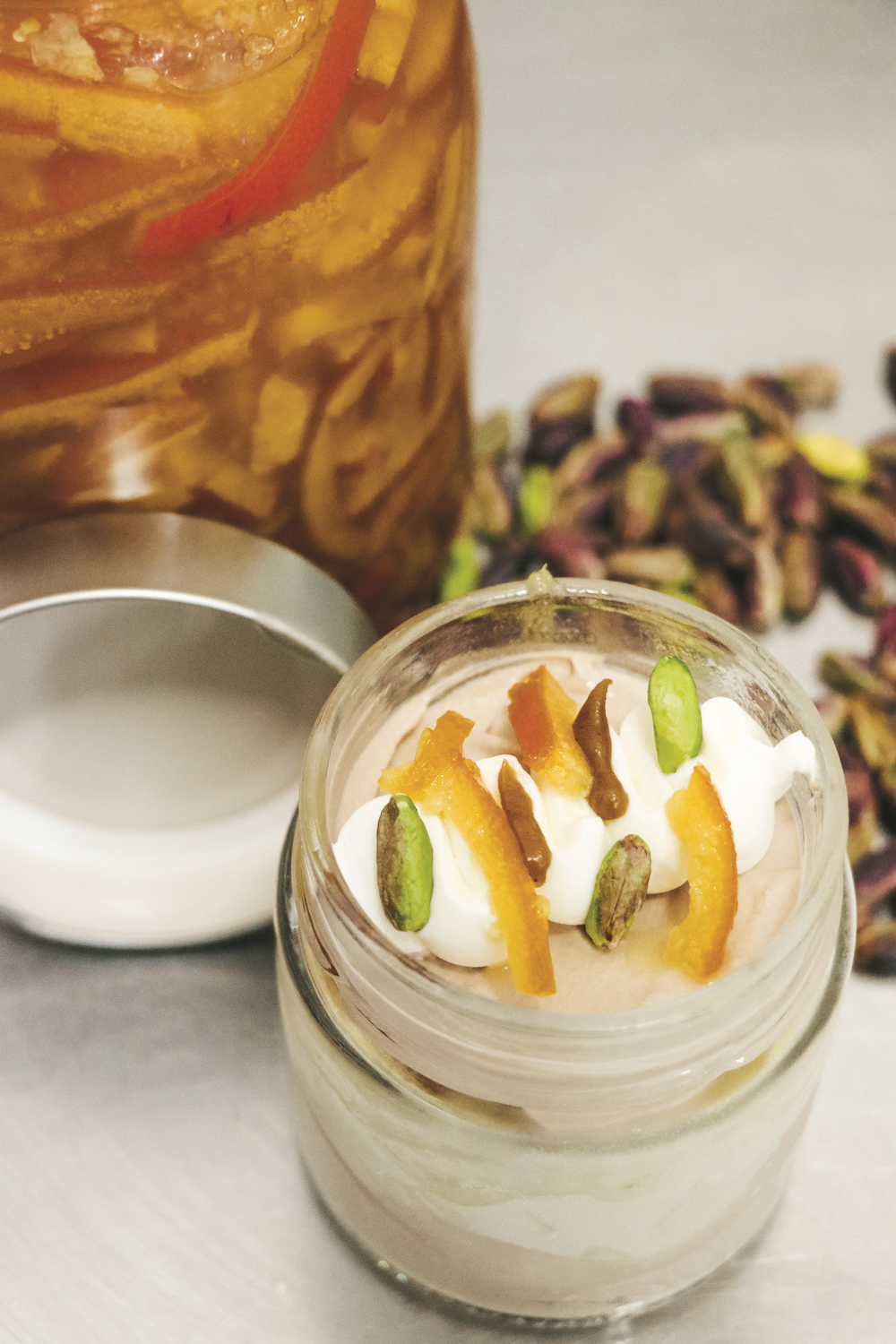 Gelato al pistacchio Mousse ghiacciata al cioccolato al latte Scorzette di arancia semi candite Salsa al pistacchio Mousse ghiacciata al cioccolato al latte Ingredienti Meringa italiana – 100 gr Panna fresca 35% semimontata – 650 gr Copertura al latte – 400 gr Panna 35% – 50 gr Procedimento Unire la meringa italiana al cioccolato al latte sciolto, in precedenza […]